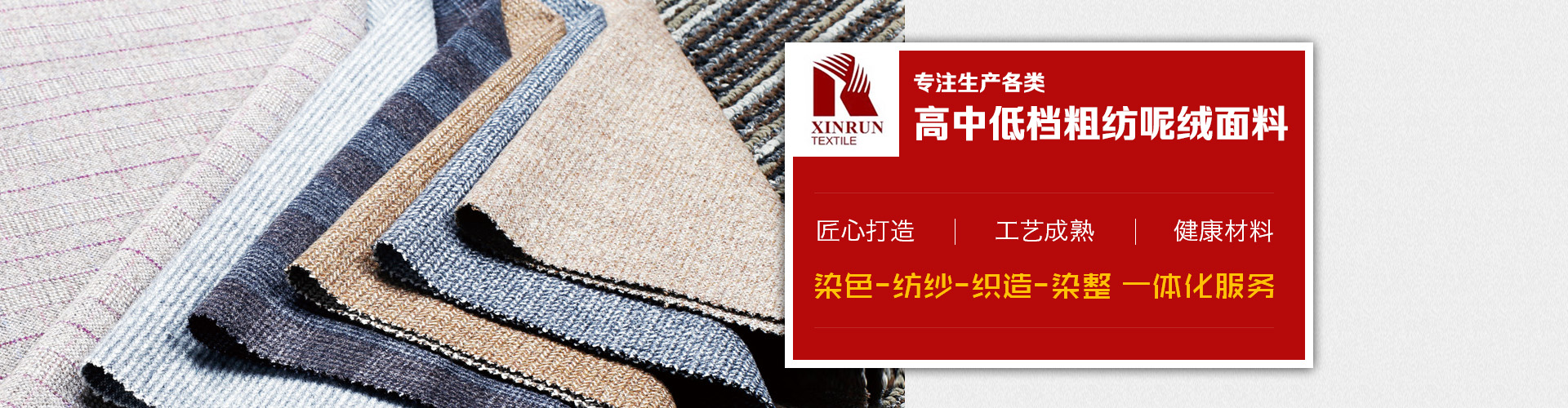 上海鑫潤紡織品有限公司是一家從事開發(fā),生產,銷售為一體的毛紡面料公司,公司生產各類高中低檔粗紡呢絨面料,并下轄控股毛紡廠3家,擁有先進的生產設備和的管理體系,不僅在國內市場享有良好地信譽,而且產品遠銷美國,歐洲,俄羅斯,韓國,日本等不同國家,贏得了國外市場的一致好評。憑借優(yōu)良的品質,良好的信譽,我公司還是ZARA,H&M,C&A,JACK&JONES,MANGO,TARGET,PROMODE,ORSAY等國外知名品牌的供應商。